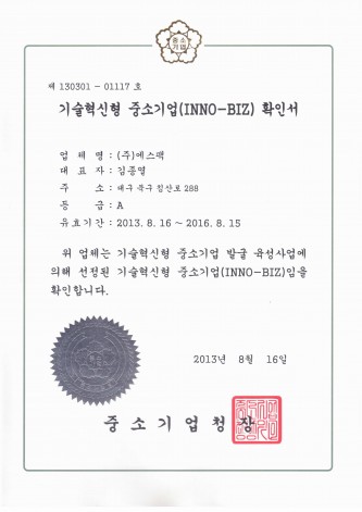 등록증 및 특허증